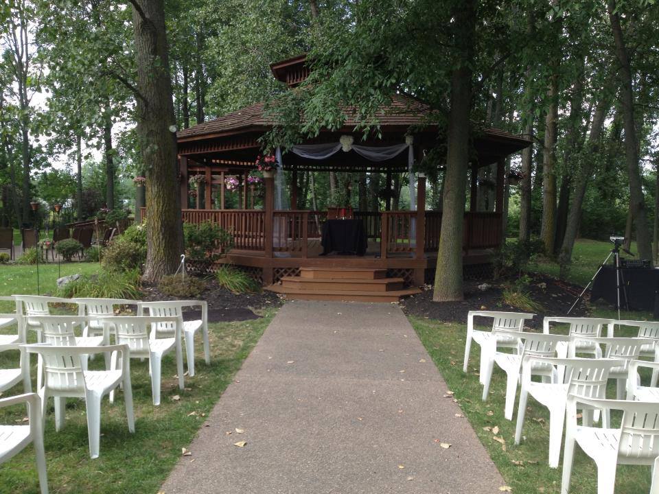 Sunday August 18th was a beautiful day! If you’re having an outdoor wedding, this is the kind of day you spend most of the year hoping for. The gazebo at Banchetti by Rizzo was just waiting for Corey and Michael to get up there and get married! Corey hid behind a parasol as she came out and waited for the big moment. After some late comers hurried to their spot, the groomsmen and bridesmaids made their way to the front single file. Then everyone turned to see Michael escorting his bride to be to their alter. My favorite moment was when I told Michael it was time for his vows and he looked at me with nerves running wild and told me to make Corey go first. It was hilarious! They made it through that, lovely as expected, and then stepped up into the gazebo to light their unity candle and unite both of their lives together. It was a beautiful moment and a happy, happy day! Congratulations Corey and Michael! After so many years of having to be apart, you are finally together forever! You’re rainy evenings are over…Much love from me to you!