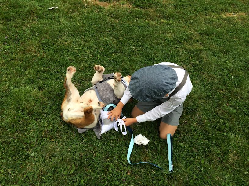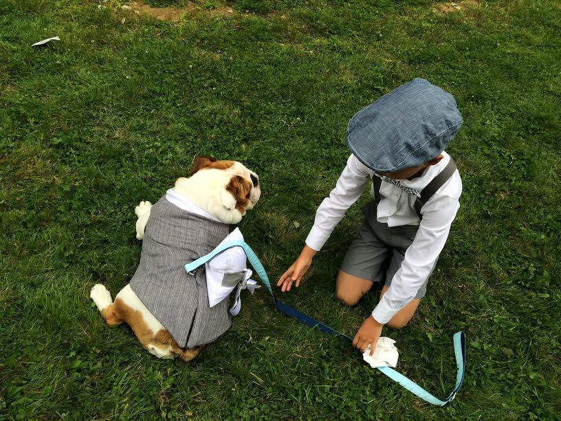 Halle and Brian know how to throw a wedding. Of course they had the wonderful Costamagna Design to help them out, so everything at Knox Farm State Park in East Aurora looked amazing. With quotes from their favorite movie painted on wooden signs (The Princess Bride…you can’t go wrong), and the little peoples name holders (my personal favorite), there was a touch of unique on everything. Including Mr. Benjamin Pickles, the most handsome ring bearer in town. Although he seemed less interested in his vest and more interested in rolling around on the grass looking for treats. The guests couldn’t stop joking with Brian and his groomsmen, and had to be persuaded to sit down to get the ceremony started. Brian greeted each bridesmaid as she made her way up, letting them know it wasn’t against the rules to talk to him. They laughed and the guests loved it. After Halle made her way up, looking stunning, all eyes were on her and Brian as they held hands and teased and joked each other. After two readings that were perfect for them, they shared their touching and personal vows with each other. Halle started with an excerpt from the book The Princess Bride and Brian finished off his vows with a Letterman’s top 10 of things he promised Halle, and kept it legit by throwing the cards after he read them and of course, his best man came in with sound effects. It was hilarious and it seemed that people never wanted this wedding to end. Finally though it did, with a passionate kiss and two glowing faces. Congratulations Halle & Brian. Without a doubt the two of you were made for each other and will have a long, hilarious life together. All the best!