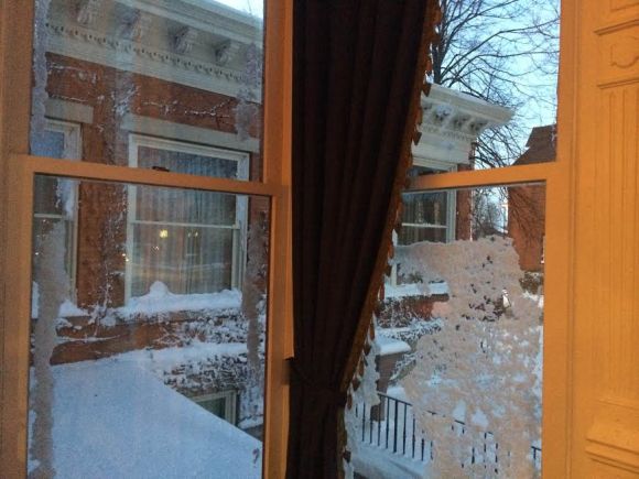 Did you think that the January 9th snowstorm was inconvenient? Well, be happy it wasn’t your wedding day…and you didn’t have family driving in…on a highway that was shut down. But when it’s meant to be your day, and your friends and family would stop at nothing to be a part of it, things turn out ok in the end. Beautiful actually. So on that snowy evening I headed down to the Mansion on Delaware to be a part of Debra and Patrick’s big day. I was expecting Debra to be freaking out over the weather, but she was mostly just overcome with happiness that the day was here. I mean she was there, and Pat was there, so really, what more could you need? As chilly family members slowly began to trickle in, we realized that almost everyone would make this day no matter what. Debra and Pat took some photos beforehand, using the snow as a beautiful background. And with fires burning inside the gorgeous mansion, you could almost forget what was happening outside.