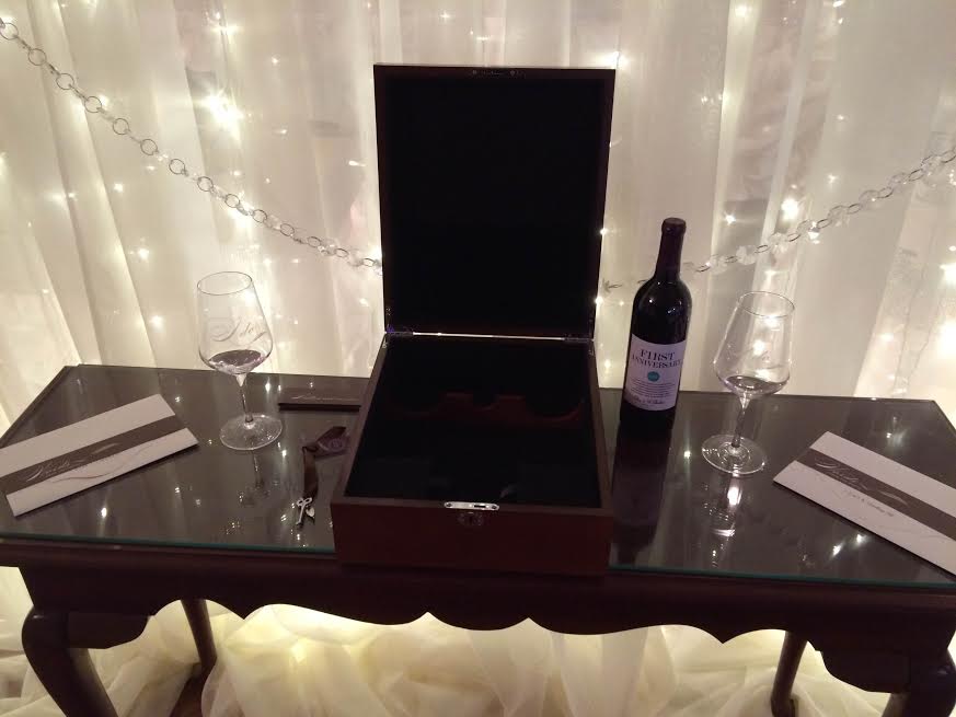 When Leah arrived, Carl, his best man, and myself went to hide outside until it was time to stand in front of family and friends. With Carl being such a big guy, I was shocked and moved every time he got emotional before and during the ceremony. As Leah walked in, she looked goregous and no one could take their eyes off her. She came up to Carl and after tear filled vows, they placed love letters in a wine box that they would open and enjoy one year from this day. A giant group “awww” came from the audience as they sealed the box together. Soon it was time to kiss and to shimmy back down the aisle, preparing to party the night away. Congratulations Carl and Leah! It was such a beautiful day and I felt honored to be a part of it. Best wishes!!!