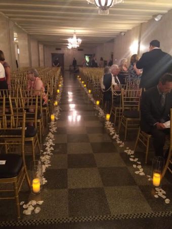 Statler City is a beautiful and historic Buffalo building. As soon as you see it you think, I bet there is a classy-as-hell wedding going on in there. And on August 22nd, you would have be right! Walking in the doors and seeing Patrick’s groomsmen in tuxes, I knew this was going to be an unforgettable evening. And of course, it was designed by Costamagna Design, which is the best of the best, so everything was stylish and sophisticated and perfect for Angela and Patrick. The happy couple was hiding out together in a back room, waiting for the moment to begin. They were surrounded by their bridal party, but they kept finding moments to steal glances at each other. They both looked gorgeous and didn’t seem at all nervous for the big moment that was approaching. After years together, they knew this wedding was always inevitable. Soon it was time, and their guests quieted down, anticipating seeing the couple for the first time. I made my way to the alter with Patrick and his groomsmen, and that’s when Patrick seemed to become a little nervous, an anxious look sneaking onto his face. Even though they had just been hanging out together, now it was real! Angela came from around the corner and began walking towards her future husband, and things were never going to be the same again. In the best way imaginable! After their godparents gave some beautiful readings, the happy couple held hands and vowed to each other, through nervous laughter, to love each other for a lifetime. When I looked out to the audience, everyone was smiling ear to ear and you could tell that Angela and Patrick weren’t the only people in the room that had been anticipating this moment. Congratulations Patrick and Angela! I’m so glad we were able to find each other across the country and that I could share in this magical moment. Enjoy every moment together for all of your days!