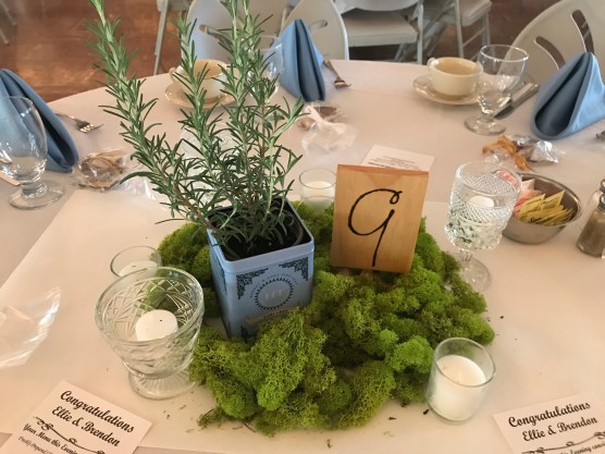 Here’s to marrying siblings! I was so excited when Ellie first contacted me, because I had married her sister Marion a year or so before and therefore I #1: knew she liked her sister’s ceremony and #2: maybe I’d be considered family now and get to share in Christmas! All jokes aside, August 25th was a beautiful day at Joseph’s Catering. The outside area was bright and clean and the inside was covered in white string lights. It really looked magical. Plus, they had Harney & Sons tea tins on their tables, which I also used in my wedding centerpieces, so I loved that!