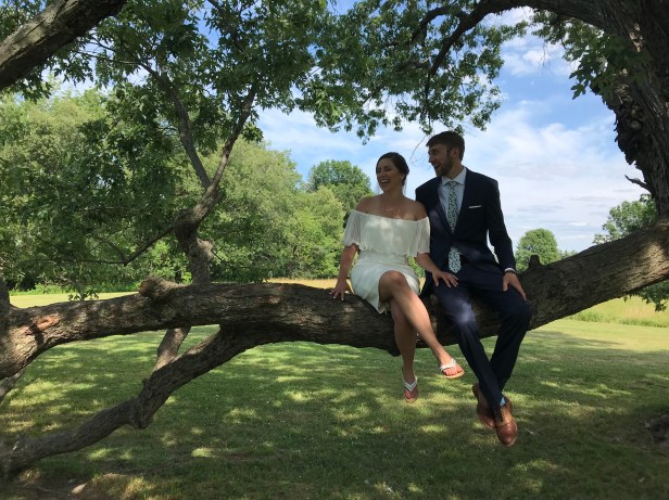 There is nothing I love more than a weekday wedding! So on Wednesday July 11th, I was so happy to head to Knox Farms to help Lindsay and Scott with their private elopement. Lindsay and Scott are such a beautiful couple, and this moment seemed perfect for them. Although they have a lot of friends and family, they knew that this special moment was meant to be with just the two of them. We met under an AMAZING tree that they were both familiar with, and I was able to watch them focus only on each other and share their vows with laughs, some tears, some pesky bug removal, and all the other joys that come with marrying your best friend. Their kiss was graceful and lovely and I was thrilled to pronounce them husband and wife! And then I was even happier to get them into that tree for a photo shoot! Congratulations Scott and Lindsay. This moment was meant for the two of you, and I hope your friends were just as happy the next day at kick ball when you broke the news! Much love always!