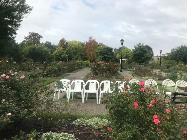 The Rose Garden at Delaware Park is such a lovely place to get married. And even on October 6th, with fall settling in around us, there were still blooming flowers and some pesky bees to go along with them. Guests started slowly arriving for the intimate gathering, and Stephen was around to greet them. He seemed very excited and nervous, and I was greatly anticipating Dana’s arrival. A few days before had been cold and rainy, so I was overjoyed for them that this was such a gorgeous afternoon. After Stephen made his way up the stage, I saw Dana arrive with her bridesmaid’s, looking beautiful and overjoyed. Things were moving quickly then, and soon it was time for her to make her way to Stephen.