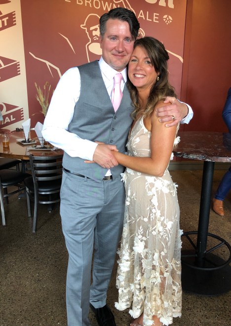 I don’t pick favorite couples, but if I did, Pam & Dave are right at the top of the list. It doesn’t hurt that Dave and I bowl on the same nights, so we got some extra hang time before June 7th, a perfect wedding day. Well sort of a wedding day. Pam didn’t want to call it that. More of a, hey-let’s-hang-out-and-have-drinks-and-oh-i-got-married sort of thing. It was perfect for them and Big Ditch was a perfect spot. It really just felt like close friends and family hanging out and having a couple beers. It felt low key, intimate, and lovely. I could tell Pam was getting a little bit nervous, but she was mostly excited and she and Dave kept checking in with each other. After waiting for guests to arrive, it was time to get this non-wedding-party started. They immediately looked so happy standing there with me. I think I was beaming from ear to ear to get to be a part of this moment. Early in the ceremony they had a reading, and it was my favorite part. They had many different friends and family share one line from the reading, and it was great watching the microphone being passed around the room to different people, all saying a bit. The last two lines were for Pam and Dave, and it took Dave a beat or two to even get it out because he was so emotional. He was so moved when he finally did that he grabbed Pam and they shared a huge kiss! I was laughing and told them to hang on a minute, we weren’t even half way done! The rest of the ceremony was a dream and when it was time to kiss again, it was absolutely perfect. Probably because of that earlier practicing! Congratulations Dave and Pam! I’m really so happy that you found each other (more than once), because it’s clear that you’re meant to be. Let’s make sure we roll a game together in the future. Best wishes always!