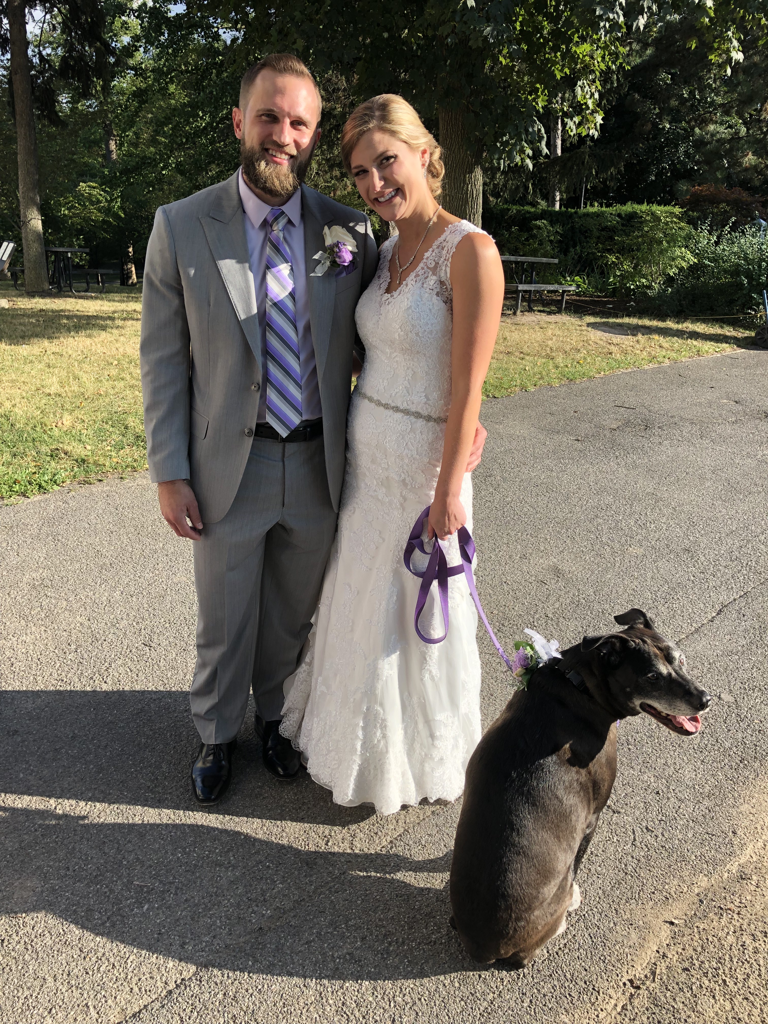 Thank you world for providing me with all of these weddings with dogs. I’ve had a good run of them and August 10th, at the Buffalo History Museum was no exception. I found Holly and Mike outside in the sunshine when I arrived, both looking beautiful (but hard to top pup Hunter), and so excited for everything to begin. It was an intimate wedding and guests slowly gathered as the band played tunes to get everyone in the mood. Mike seemed a little bit nervous, but it only takes a few of Holly’s very positive smiles to make everyone feel comfortable. We stood outside and watched the wedding party walk up the grand steps and take their place, and even though I had already seen Holly, she looked even lovelier as she made her way to her future husband. They smiled at each other and made it through that emotional moment that you can never be sure how you’ll handle. They finished their unity ceremony and by the time they came back together to take hands, I could feel and stress leave them to replaced by pure joy. Moments later they were covered with streamers and guests happily congratulated them! Congratulations Mike and Holly! You’re such a wonderful couple and I wish you nothing but the best on your future together!