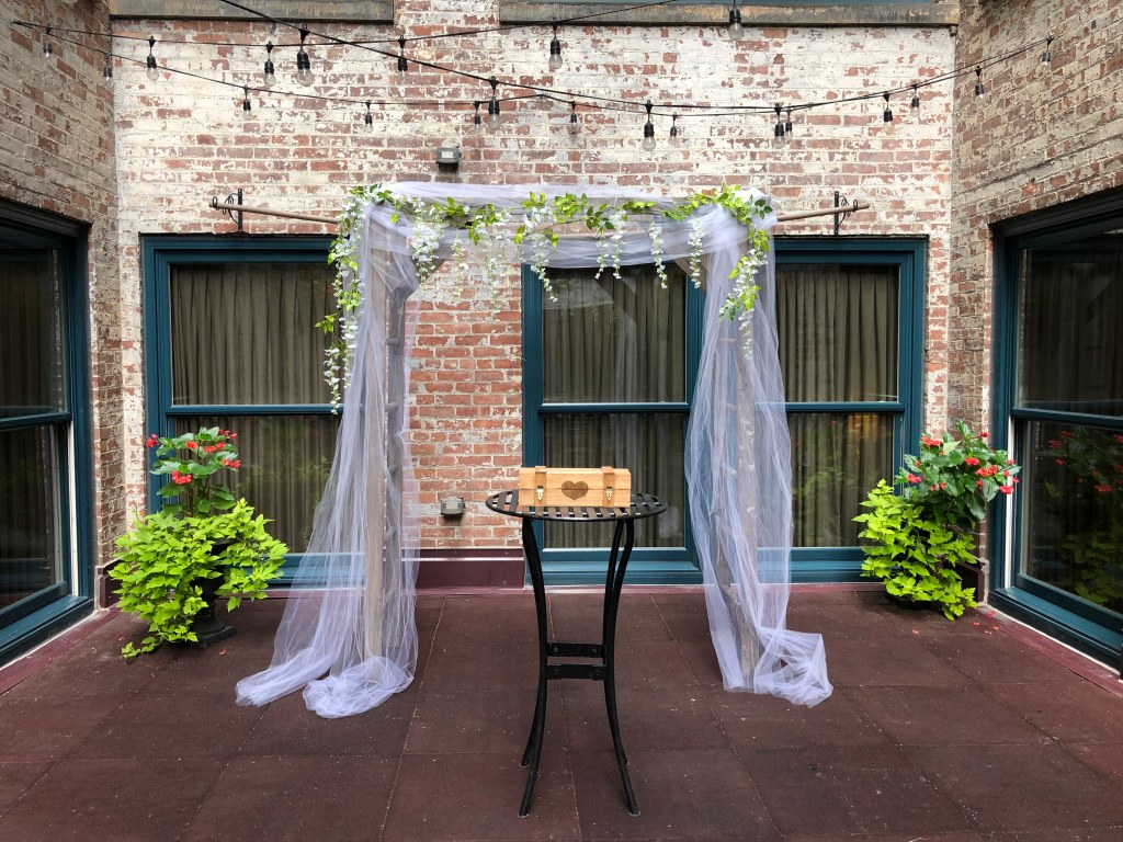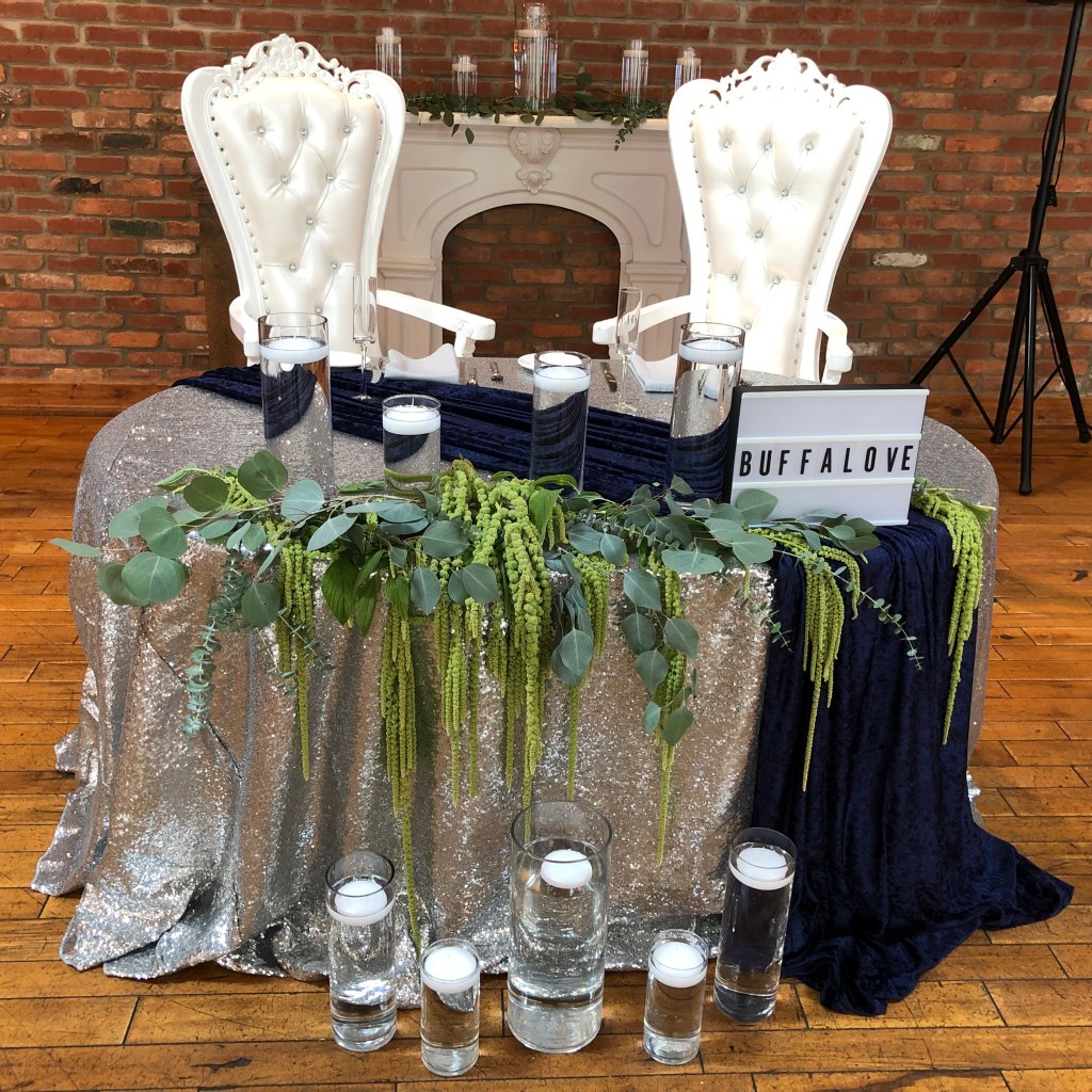Everything looked perfect in their reception space. Classy, yet perfectly tailored to their Buffalo personalities. There were little buffaloes all over everything, including Adam’s tie, and it couldn’t have been cuter. When I met up with them, they were simply glowing, and I knew there wasn’t anything that could happen that would take the wind out of their sails. I headed out to the courtyard to watch the wedding party walk in, and once Adam and Mari-Jo were near each other, forget about it…it was their world! They maybe heard a snippet here and there, but they were so focused on each other and smiling and laughing that it was hard for me to remember I had a job to do and had to keep reading and not just fawning over them. After their Wine/Love Letter Box sealing, they came back for that giant kiss and were finally married! Congratulations Adam and Mari-Jo! You’re such a lovely couple and I know you’ll have a long and full life ahead of you! Best wishes always!