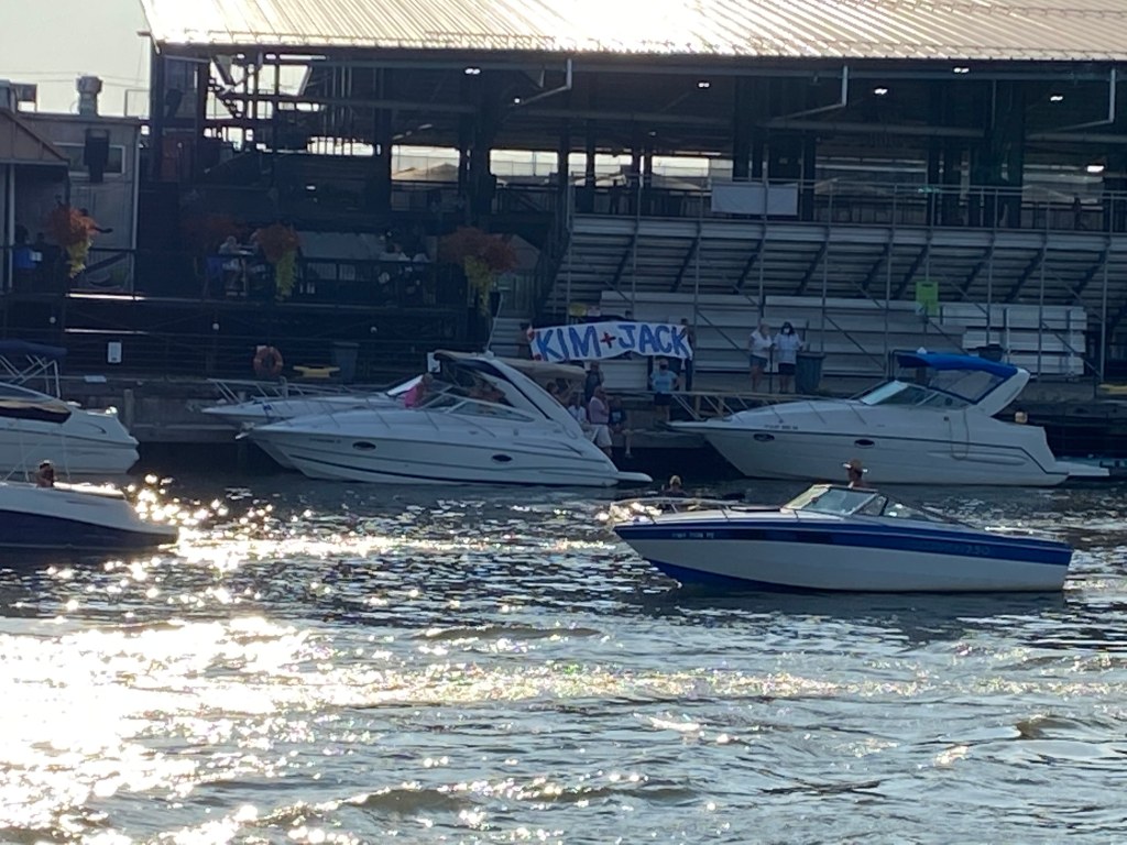 All weddings are equal yes, BUT there is a teeny tiny something extra when you marry your neighbors! And I was so lucky to do that on September 26th at Tewksbury Lodge. I moved into my home 5 years ago, and about a year after that, Kim and Jack moved in. And if you’ve ever had new neighbors move in, you know how stressful that can be. Who are they? What are they about? What if they only listen to pop country on loud and hate gardening? Well I had nothing to worry about because not only are Kim and Jack good neighbors, but they are good friends as well. And I can honestly say the first neighbors I’ve ever had that became my real life friend! So I was honored to be a part of their wedding day. They are no muss no fuss couple, which I love, so I knew everything would be perfect for their day. It was a small group and everyone was so happy to be there. The ceremony was outside and it was gorgeous, and across the water I could see family that had hung a huge Kim and Jack sign! It was a very special moment for me and I can’t wait to spend many more years with the best neighbors around. All my love Jack and Kim. I’m so happy you moved in and that you don’t complain about me peeking over the fence all the time to talk about nothing. Best always.