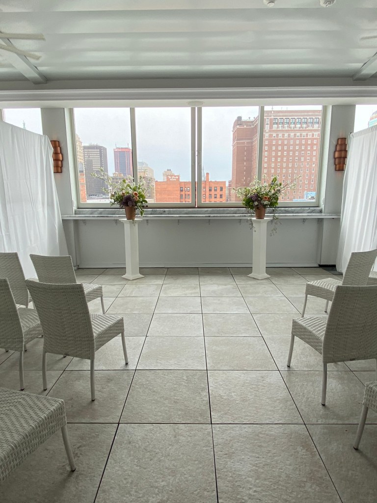 April 24th was a magical day for Natalie and Dave. At the beautiful Curtiss Hotel, up on the roof, they said their “I do’s.” They’ve already become a little family with their two children, but this was just one more way for them to tell each other how happy they are that they found one another. It was a beautiful space, very intimate and low-key, and honestly felt perfect. They both seemed so genuinely happy that I knew nothing could go wrong for them. They held hands, smiled, and soon enough, were husband and wife. Congratulations Dave and Natalie! You’re so perfect together and I’m so happy I got to be a part of it. Best wishes always and thanks for my amazing glass full of sponge candy. That gets you to the top of my list π