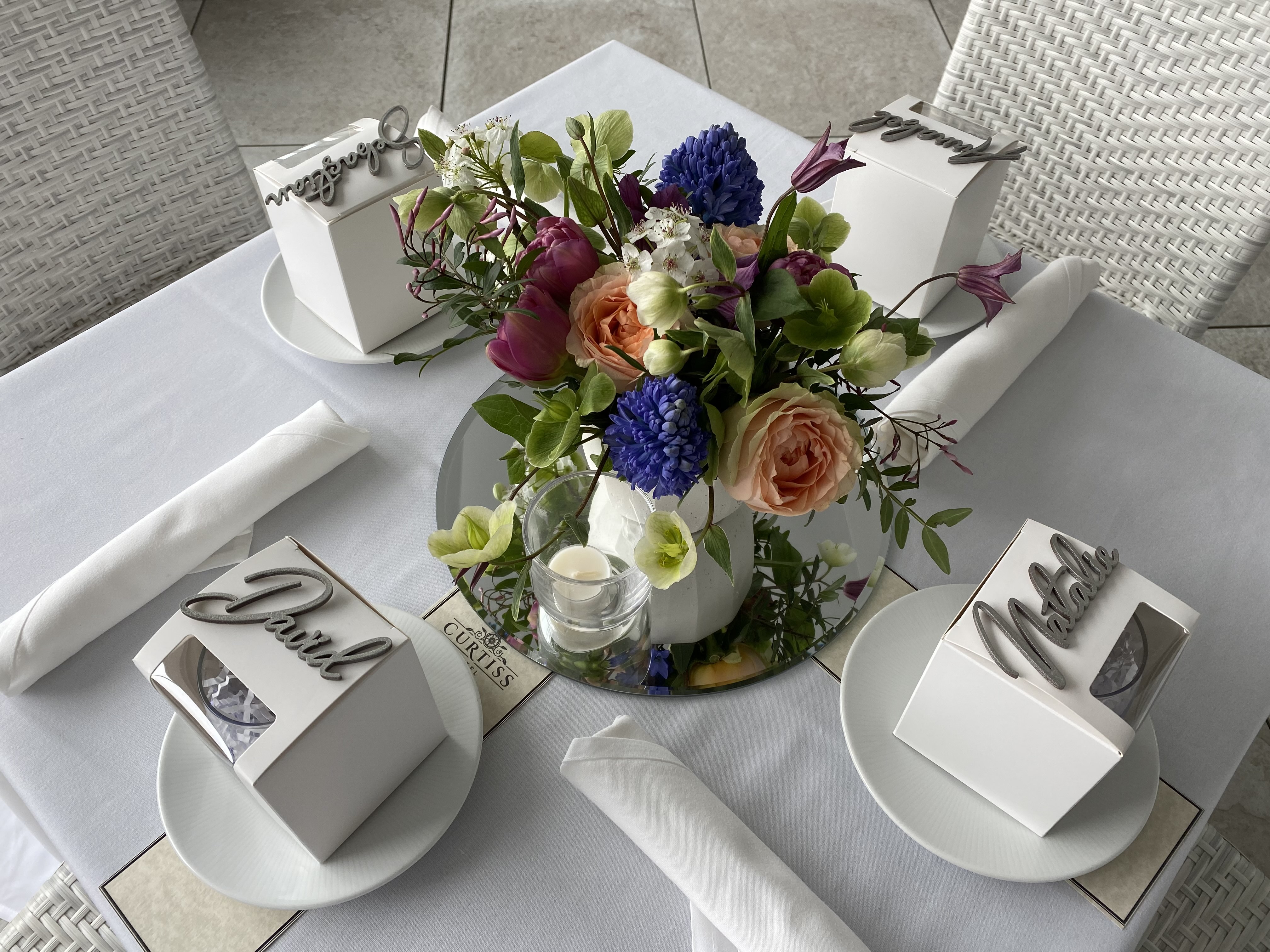 April 24th was a magical day for Natalie and Dave. At the beautiful Curtiss Hotel, up on the roof, they said their “I do’s.” They’ve already become a little family with their two children, but this was just one more way for them to tell each other how happy they are that they found one another. It was a beautiful space, very intimate and low-key, and honestly felt perfect. They both seemed so genuinely happy that I knew nothing could go wrong for them. They held hands, smiled, and soon enough, were husband and wife. Congratulations Dave and Natalie! You’re so perfect together and I’m so happy I got to be a part of it. Best wishes always and thanks for my amazing glass full of sponge candy. That gets you to the top of my list π