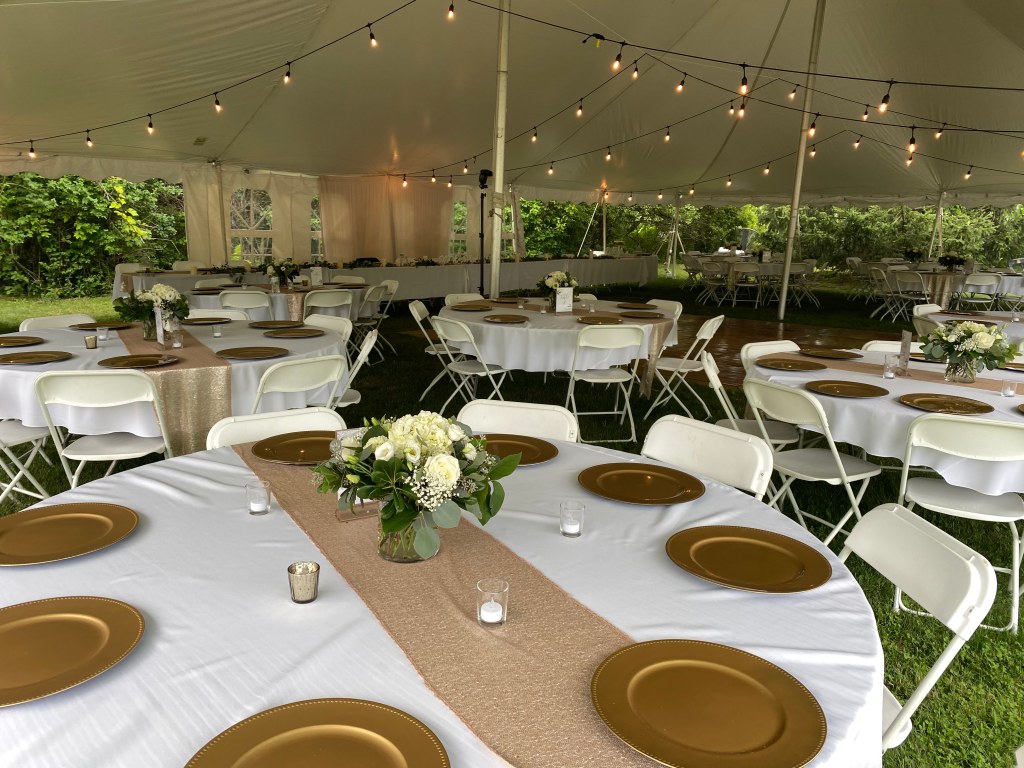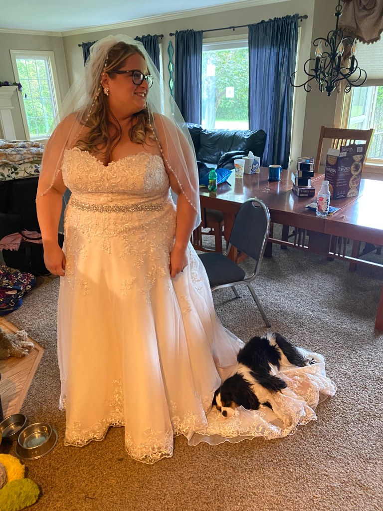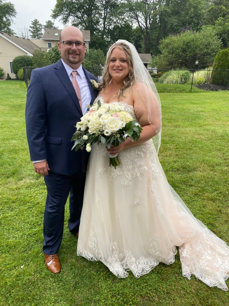 July 24th was threatening rain, but it was so green and beautiful in Stafford, NY, in Samantha’s parents backyard, it was hard to remember to be nervous about it. When I arrived I found Sam chillin’ with her bridesmaid’s (and the cutest sleepy puppers), and getting excited about things starting. Tim took me around to see how things would work in this amazing space, and I gawked at what a pretty alter it was with a giant pond behind them. It did start to sprinkle a little bit as Sam was walking, but she looked so beautiful I’m not sure anyone noticed. They smiled at each other and read their beautiful vows and I was reminded how magical these moments can be. It may be raining on you, but who cares when you’re telling your person how much you love them. It reminds you what is important in life. After I sped up my talk a bit (I didn’t want then too wet), it felt like no time before they were kissing as husband and wife! Congratulations Tim and Samantha. You’ve been together a long time and this seemed like a moment that was worth waiting for for. Best wishes always.