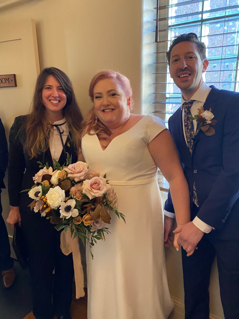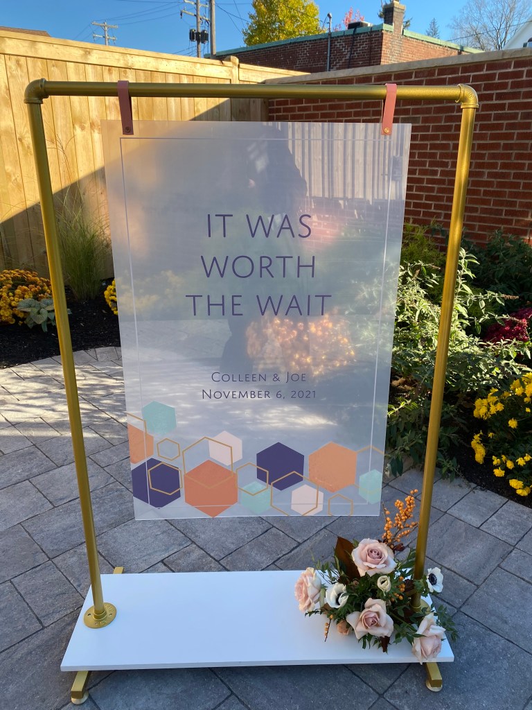 November 6th was exciting not only because it was beautiful in November, but I got to see a new venue! After officiating for a decade, I’ve seen most of what Erie County has to offer, but The Bank in East Aurora was a new and exciting spot, one that was perfect for Colleen and Joe! I was immediately laughing at their perfect “it was worth the wait” sign, and then was laughing at Colleen’s energy and excitement. Joe was a little more reserved, but he couldn’t hide the excitement from his eyes. Soon enough we were outside watching Colleen make her beautiful entrance, and I think I was excited as both of them! It was a lovely moment that suited the two of them, and everyone erupted when they were finally announced husband and wife! Congratulations Joe and Colleen! I wish you a lifetime of happiness and it truly was worth the wait.