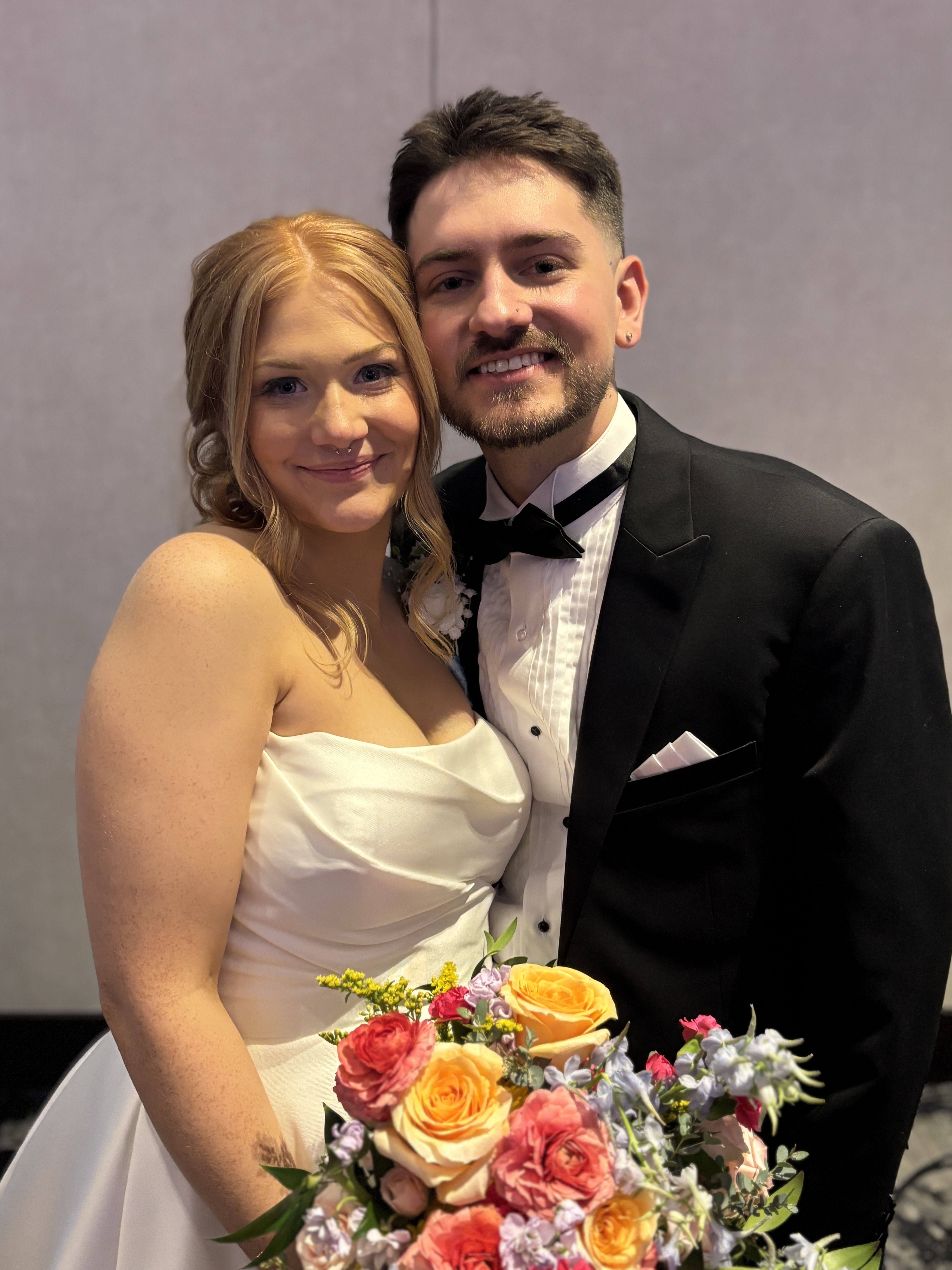 Finally, we’re really back in wedding season! March 28th seemed like the official opening, and I was lucky to experience it with Emma and Nicholas at Buffalo Marriott at LECOM Harborcenter. I was less lucky that there was a Sabres game at that moment and parking was impossible, but it’s worth it for the Sabres to be having the season they are. And it’s worth circling for Emma and Nick. Both are so cute and well matched, I was looking forward to seeing them in person. And they didn’t disappoint. Especially seeing Emma’s baby belly that I didn’t even know about! It made everything more exciting. Not like their little daughter Alice was going to let any moment be less than exciting😂 The couple was so ready to start the show. Maybe a little bit of nerves coming from Nicholas, but Emma looked beautiful and ready to go! I made my way to the alter, trying to look my best for my favorite photographers, SMW Photography, and watched Nicholas be greeting by all his groomsmen, handing out hand slaps and hugs. Then Emma made her way to him. They just beamed at each other and had this moment that belonged to just the two of them. But, with little Alice that moment didn’t last long, and soon they were holding her with them at the alter. A perfect little family. After their vows and rings it was time to kiss as husband and wife!