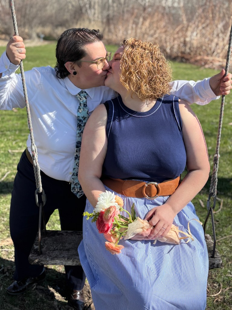 April 11th was an awesome day. I had a wedding planned for later in the evening, but then a day before a couple friends told me they were ready to tie the knot as well! So on the morning of April 11th, I was lucky enough to marry Karine and Julianna! It was a beautiful morning. Brisk, but a perfect spring day. After some friends gathered around for this intimate moment, Karine and Julianna found a charming old tree to stand other to share their vows which including the parts of a tree that make it strong, and how that pertains to their relationship. It was a very touching moment, and I was smiling biggest of all when it was time to kiss as wives!
