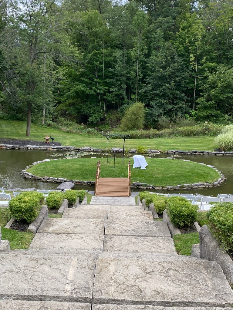 We started to gather outside, and Jimmy and I joked how their singer looked like a ghost because she had to have a sheet over her to keep the electrical equipment dry. But he didn’t care about the sprinkling at all. And then Sydney made her debut, and he just immediately started crying. It was so sweet and I was glad I almost always have an emergency tissue in my pocket! She joined him on the beautiful koi pond island, and they took hands as her maid of honor fixed her amazing dress. They wrote their own vows, and Jimmy read his which were so meaningful and full of love, and as Sydney pulled hers out, and let us know they were going to be long because she had lots of love to get off her chest, it started to really rain. Her party ran on got an umbrella for her, and I watched Jimmy get soaked while literally not even noticing. He only noticed her and every word she said. It was a really special moment. After that, they tucked their love letters into their wine box and soon enough were in each others arms kissing as husband and wife!