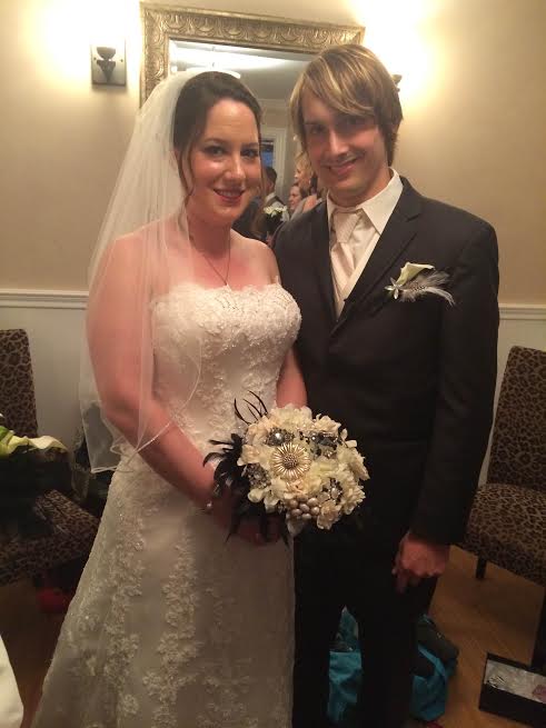 Saturday September 20th was exactly as you hope a fall day will be. Warm air, a cool breeze, some leaves changing colors, and a lot of happy people gathered outside waiting for a beautiful moment! I was of course happy when I realized that Ayres Photo was there because they are my favorite photogs in town! I went to find Tim in his hiding place with his groomsmen which was behind the lovely Botanical Gardens, near a tree where people have been etching their love for years. Tim was very excited since he hadn’t seen Christine yet that day and was missing her and anxious to see how she looked. Well it was worth the wait! After we walked out to the alter, Timothy stood before family and friends, and a couple tears started to roll down his cheek. These emotional moments are what make each wedding so unique. The bridesmaids smiled at him as they walked by and took their place, and then the big moment arrived! Christine stepped around the corner and Timothy absolutely beamed. Once she met him up front, I’m not sure if they remembered I was there because they were locked into each others eyes and laughing and whispering and making this moment theirs alone. I did tease them a little at one point though and they burst out laughing so I know they were paying attention a little bit! Soon enough Tim grabbed Christine and pulled her in for their first kiss as husband and wife. They are so loved they couldn’t even make it back down the aisle without hugging and kissing family. My face was sore after the whole ordeal because I had been smiling so much! Congratulations Timothy & Christine! I’m so glad I met both of you and that you’re together forever now. If only I could finally get that copy of Dark Side of Oz from you…